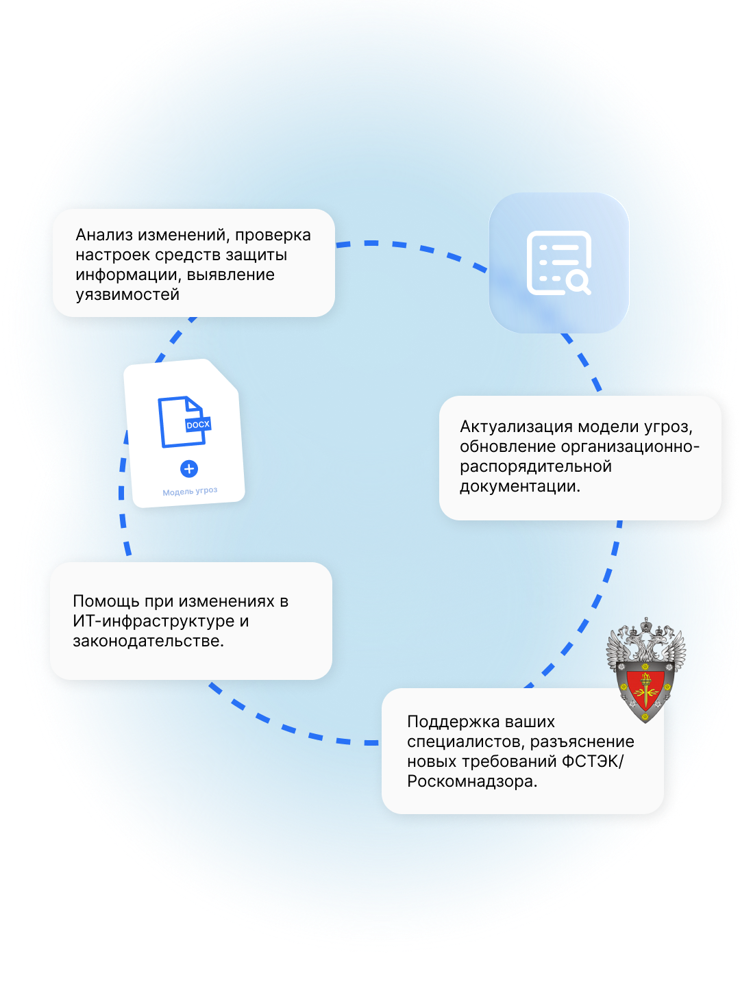 Ежегодное обследование, контроль настроек СЗИ, обновление документации, консультации ваших специалистов.