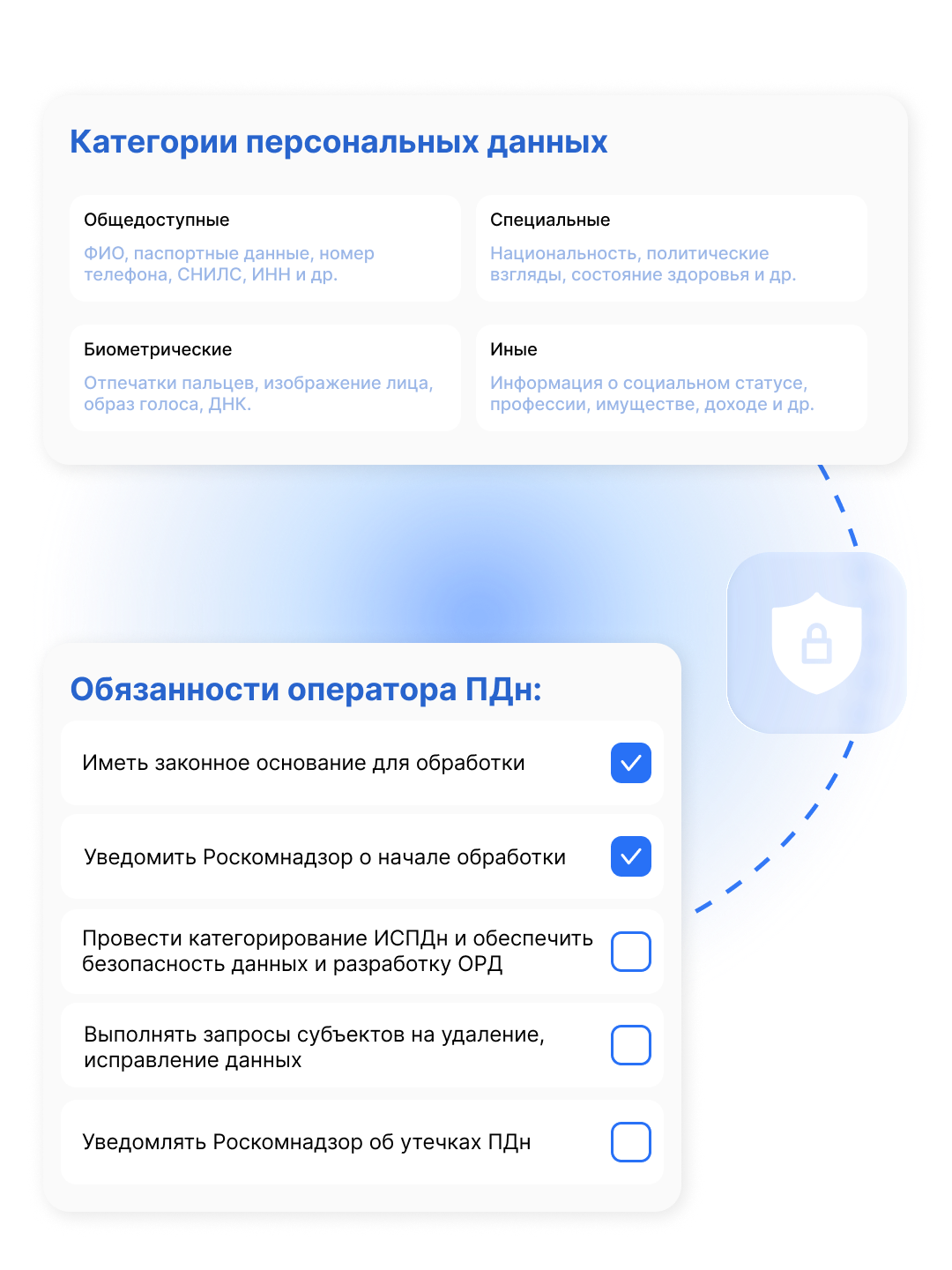 Законная и безопасная обработка персональных данных. Готовность к любой проверке регулятора. Доверие клиентов и партнеров.
